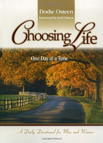 In this inspiring daily devotional, Choosing Life -- One Day at a Time, Dodie Osteen shares her personal spiritual insights -- blending Scriptures with godly exhortations and effective prayers -- to exhort, comfort, and edify both men and women. Her personal reflections from the Word of God will help bring healing, restoration, and godly encouragement to you and your loved ones so that you can choose an abundant life all year long.